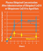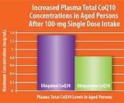 Twenty four years ago, the Life Extension Foundation introduced coenzyme Q10 to the United States. Back then, it was sold in Japan as a prescription drug to treat heart disease. Life Extension, however, provided persuasive evidence that CoQ10 could help protect against a host of age-related disorders. Based on a large volume of favorable research, CoQ10 has become one of today’s most popular dietary supplements. In recent years, new delivery systems have been developed that transport more CoQ10 into the bloodstream than original versions. Providing greater quantities of CoQ10 to the body is of particular importance, since scientific studies show that higher CoQ10 blood levels produce superior benefits. In what may be the most significant breakthrough in the history of the dietary supplement industry, Japan’s largest CoQ10 producer has discovered a way to deliver the highest concentrations of the most biologically active form of coenzyme Q10 to the bloodstream. As you will read in this article, this improved form of CoQ10 not only absorbs up to eight times better, but also has demonstrated unprecedented anti-aging effects compared to placebo and compared to the coenzyme Q10 you are using now. Unlike outrageously priced prescription drugs, this new form of CoQ10 enables consumers to obtain more activated coenzyme Q10 in their bodies at a far lower cost. Based on the findings you are about to read, this novel CoQ10 compound (ubiquinol) could revolutionize how a number of age-related disorders are both prevented and treated. Scientists long ago discovered that orally ingesting the ubiquinone form of coenzyme Q10 produced beneficial effects on the heart,1-19 brain,1,20-24 kidneys,25-27 and other tissues.1,5,28-38 What the lay literature did not discuss was the fact that in order for the ubiquinone form of CoQ10 to be properly utilized, it first must be reduced in the body to its active metabolite known as ubiquinol. While most ubiquinone is naturally reduced to ubiquinol, the optimal way to supplement with CoQ10 would be to ingest it in its ready-to-use ubiquinol form. Since ubiquinol is highly unstable, it has been extremely difficult (until now) to make it available as a dietary supplement. After years of painstaking research, Japan’s largest producer of coenzyme Q10 has developed a patented method to stabilize ubiquinol so that it can be swallowed in a capsule for utilization by cells throughout the body.39 The ramifications of widespread use of this novel form of CoQ10 are profound. For the first time, it may be possible to achieve the sustained high blood levels of biologically active ubiquinol CoQ10 needed to delay certain manifestations of aging and its related disorders. Sharply Higher Absorption LevelsEven with today’s enhanced delivery systems, achieving optimal blood levels of CoQ10 can be challenging. Those suffering from disorders that require higher blood levels have had to consume relatively large doses of CoQ10. Ideal blood levels for those afflicted with neurological disorders (such as Parkinson’s disease) or congestive heart failure are considered to be greater than 3.5 micrograms per milliliter (mcg/mL).43 When CoQ10 is ingested in its reduced form as ubiquinol, higher blood CoQ10 levels can be achieved using smaller milligram doses. In assimilation studies on rats, oral feeding of ubiquinol CoQ10 was shown to increase blood levels more than twice as high as conventional CoQ10 (ubiquinone).44,45 Human assimilation studies are even more impressive.