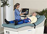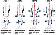 inflatable cuffs wrapped around the legs inflate and deflate in rhythm