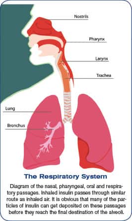 Another area of potential concern regarding inhaled insulin is the possible effect on the tissues that it comes in contact with on its way to the alveoli, including the linings of the mouth, throat, tongue, cheeks, gums, tonsils, trachea, bronchial tree, vocal cords, larynx, nasal air sinuses, and olfactory mucosa (which has a direct connection to the brain).27 Even the modified dry form of insulin is of concern. The powdered insulin will stick to the above-mentioned breathing passages on the way to the lungs. It is a known fact that insulin induces cell division wherever it is deposited.28