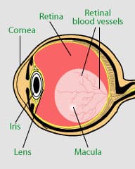 Macular Degeneration Macular degeneration is the leading cause of acquired blindness and vision impairment among elderly Americans. It is estimated that up to 17 million elderly Americans have at least early signs of the disease called age-related maculopathy. The National Eye Institute estimates that nearly 1.7 million elderly Americans have the more advanced stage of macular degeneration, and a new case is diagnosed every three minutes. The prevalence of the disease increases with age, affecting one in six Americans aged 55 to 64 and one in three Americans over 75. Of the 1.7 million currently afflicted, nearly 85% have the most prevalent form of the disease, known as dry macular degeneration.2,33,34 Patients who are affected suffer a gradual loss of central vision due to the death of photoreceptor cells (rods and cones) and their close associates, retinal pigmented epithelium cells. Photoreceptors are the cells in the retina that actually “see” light and are essential for vision. Retinal pigmented epithelium cells are like the “nursemaids” for photoreceptor cells and are necessary for photoreceptor survival. The death of either of these cell types leads to the death of the other. The macula contains the highest concentration of cone-type photoreceptors that are responsible for providing color and fine detail in the center of the visual field. Thus, patients with macular degeneration gradually lose their central vision and with it, the ability to drive, read, and see the faces of loved ones. As bad as this may be, those suffering the disease can function at a reasonable level for many years. However, another aspect of macular degeneration is even more devastating. As the photoreceptor and retinal pigmented epithelium cells slowly degenerate, blood vessels tend to grow from their normal location in the choroid into an abnormal location beneath the retina. This abnormal new blood vessel growth is called choroidal neovascularization, or wet macular degeneration. Abnormal blood vessels leak and bleed, resulting in sudden and severe loss of central vision. Depending on the location, laser treatment can sometimes be given to destroy the blood vessels. When retinal cells are lost, they are not replaced and central vision loss can be profound. New drugs are currently under development for wet macular degeneration, but their availability may be years away.