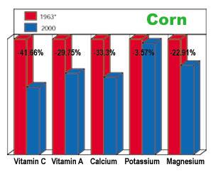 Jack took his findings to the USDA, hoping for a reasonable explanation. That was two years ago. He’s still waiting. So is Organic Gardening magazine, which published an open letter, seeking an explanation from Dan Glickman, Secretary of Agriculture. Glickman didn’t respond, but USDA employee, Phyllis E. Johnson did. Johnson (who is head of the Beltsville area office), suggested to Organic Gardening that the nutrient drain should be put in context. According to her, the 78% decrease in calcium content of corn is not significant because no one eats corn for calcium. She further explains that the problem may not even exist at all; that the apparent nutrient dips could be due to the testing procedures. For example, “changes in the public’s perception of what the edible portion is may determine what parts have been analyzed over time.” In other words, back when the old food tables were made up, people may have been eating the cobb too, so they got more nutrients.