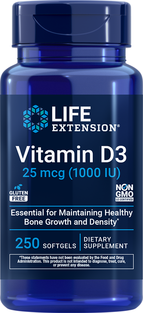 Vitamin D3 can be synthesized by humans in the skin upon exposure to ultraviolet-B (UVB) radiation from sunlight. But, due to the winter season, weather conditions, and sun block, the body’s ability to produce optimal vitamin D levels may be inhibited. These factors point to the value of taking a daily vitamin D supplement.