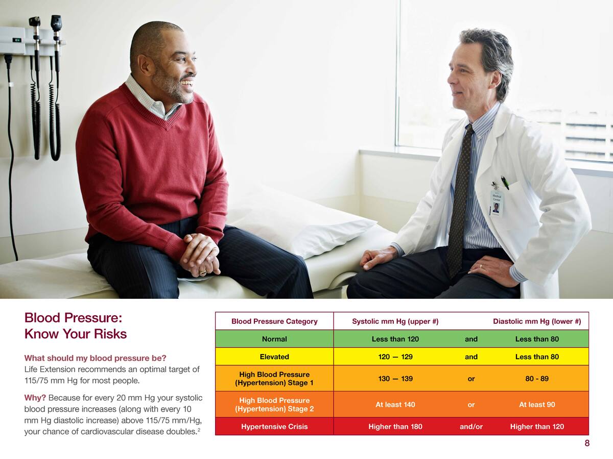 Huge numbers of heart attacks and strokes occur in those who fail to keep systolic blood pressure below 120-130 mmHg. One study shows total life expectancy to be 5 years longer in those who achieve optimal blood pressure control.