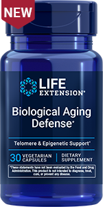That's where Biological Aging Defense comes in. Life Extension's cutting-edge formula supports biological aging by targeting two key biomarkers of healthy aging: telomere length and DNA methylation age.