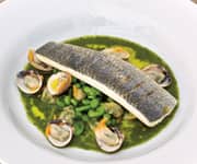 TO SERVE: Divide the vegetables and cockles among 4 warm serving bowls. Dress the fish fillets with a little lemon juice and olive oil. Place on top of the cockle pistou and season. Decorate with the reserved cockles in their shells and serve immediately.