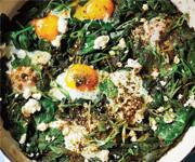 Green Shakshuka with Chard, Kale, Spinach, and Feta