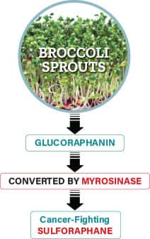 Even so, cooking broccoli or sprouts destroys most of the sulforaphane precursor (glucoraphanin) and the enzyme (myrosinase) needed to convert glucoraphanin (in the intestines) to sulforaphane for absorption into the bloodstream.