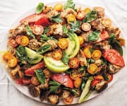 I wouldn’t change much here, as the ingredients should be easy enough to find in high summer in most places.However, you can swap out the balsamic vinegar for red wine vin- egar, basil for parsley or dill, and scallions for the red onion.