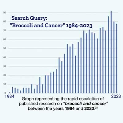 Entering the terms "broccoli and cancer" on the National Library of Medicine website reveals rapid escalation of published research shown on the following graph:21