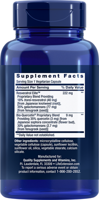 Resveratrol is a healthy aging nutrient. Quercetin promotes heart and immune health. This supplement gives you a healthy dose of both.