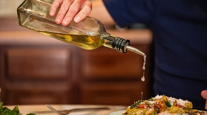 Monounsaturated fats are known to be beneficial for heart health. The cardiovascular benefits of olive oil include maintaining healthy cholesterol levels, blood pressure, and more! Interestingly, olive oil can also positively influence gene expression. In a large study in U.S. adults, daily olive oil intake was associated with an increased likelihood of living a longer, healthier life.