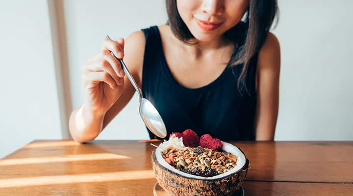 Cacao beans contain phytonutrients including flavanols, which are a rich source of antioxidants. A study on post-menopausal women found that moderate chocolate consumption of 1 to 3 servings per week was associated with a longer lifespan. Sprinkle cacao nibs on your acai bowl, yogurt parfait, and more for texture, taste, and of course, antioxidants.