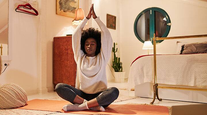 A 20-minute yoga session with the restorative power of several hours of sleep? Sign us up! Yoga nidra offers the stress-relieving benefits of a full yoga class without moving an inch.
