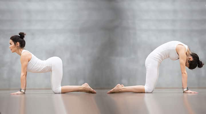 Once you have mastered each position, you can fluidly go from cat pose into cow pose and back again.