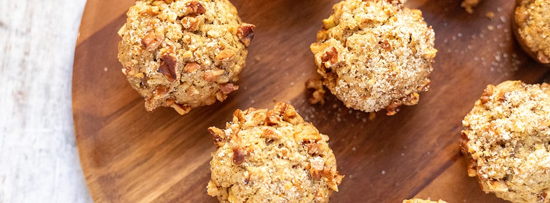 Walnuts are prized for their omega-3 fatty acid content and have been studied for both heart and brain health. These nuts also have a satisfying crunch that gives these apple muffins an interesting textural variation.