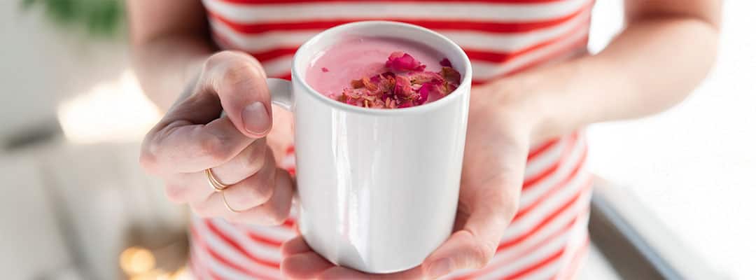 To make a beetroot latte (also called a "pink latte") you'll mix beetroot powder, warming spices and your choice of milk and sweetener and serve it hot or iced.