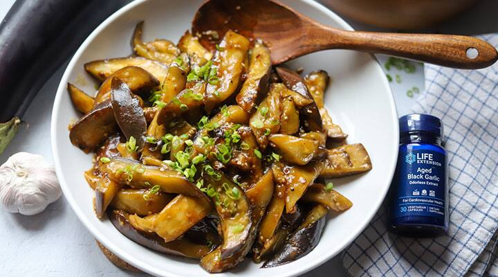 Garlic gets its health benefits from sulfur-containing compounds like allicin and S-allyl-cysteine (SAC). Aged garlic extract has increased amounts of SAC and has been clinically studied to support heart health, but it's found in relatively small amounts in raw garlic. So even though the garlic in this recipe can be part of a heart-healthy lifestyle, a better way to get the amazing health benefits of this nutrient is through a garlic supplement. Aged Black Garlic can help you get clinically studied blood pressure and cholesterol health support in one capsule daily, no cooking required.
