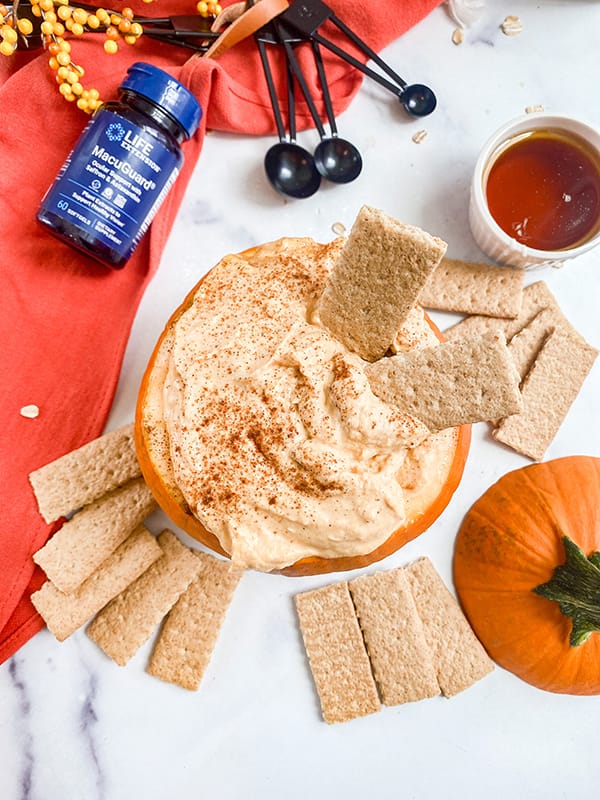 Fall is known for its foliage—those amazing displays of color in plants and tree leaves as the weather cools. But fall is also known for its flavors, most notably pumpkin, apple and cinnamon. You can bring those flavors into your home with an easy and delicious pumpkin pie dip recipe that serves up a healthy dose of antioxidants, vitamin A, minerals and vision supporting carotenoids like lutein and zeaxanthin.
