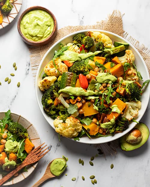 Roasted Vegetable Recipe with Avocado Salad Dressing