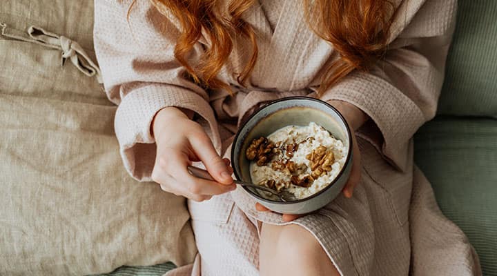 If oatmeal is part of your daily breakfast rotation, you’re in a good place. Oats contain beta-glucans which are non-digestible fiber that may improve innate immune response. Plus, certain types of fibers in oats may act as a prebiotic to help beneficial gut bacteria flourish.